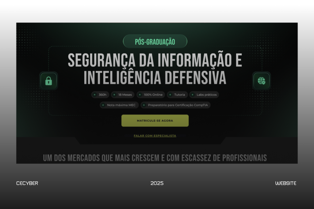A página do curso de Segurança da Informação e Inteligência Defensiva foi renovada, como o objetivo de transmitir autoridade e inovação, O projeto teve como foco criar uma interface moderna, funcional e acessível, alinhada à identidade da marca, ao setor e às expectativas de um público tech.