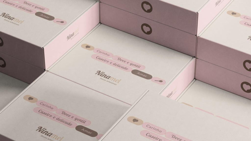 Mais do que se posicionar como uma simples vendedora de doces, a marca se apresenta como criadora de experiências afetivas, associadas a celebrações, encontros e memórias que permanecem. Sua comunicação visual possui forte apelo emocional, com grande potencial de aplicação em redes sociais, embalagens personalizadas e em um site institucional com foco em storytelling, fortalecendo a conexão com o público.