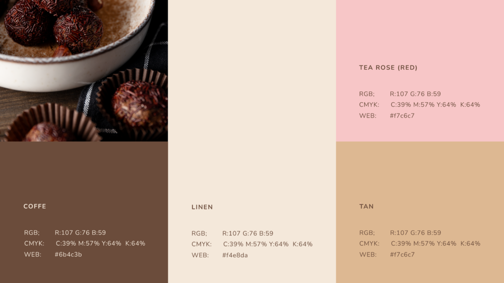 • Cor Primária: Coffee vibrante (#6B4C3B) – transmite energia, aconchego e cria conexão direta com o universo dos doces artesanais.